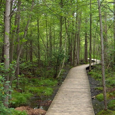 - Unique bog boardwalk trail with floating dock lookout