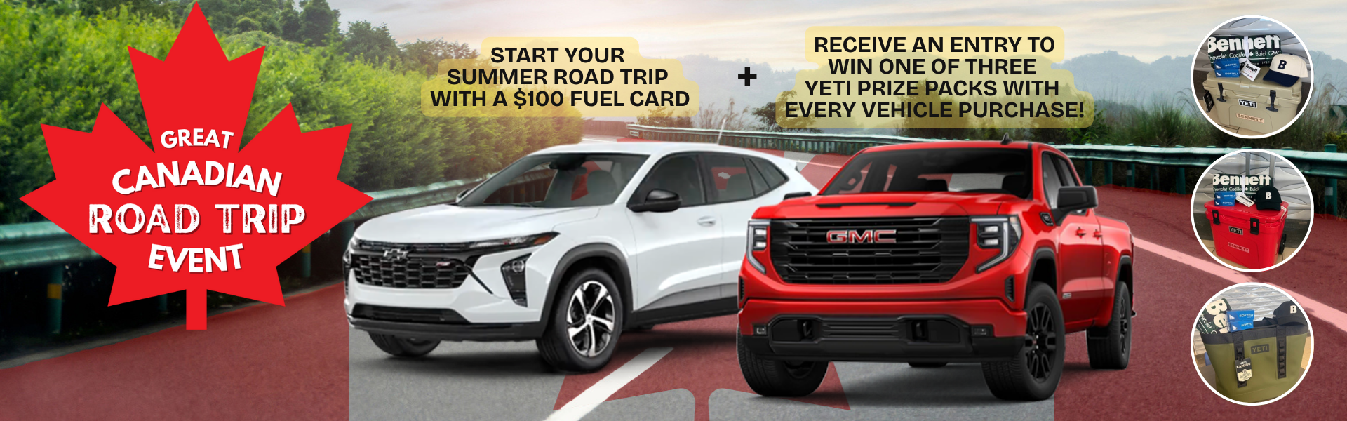 There's no better way to celebrate summer — and everything it means to be Canadian — than by hitting the open road. That's why Bennett GM is thrilled to announce the Great Canadian Road Trip Event!
