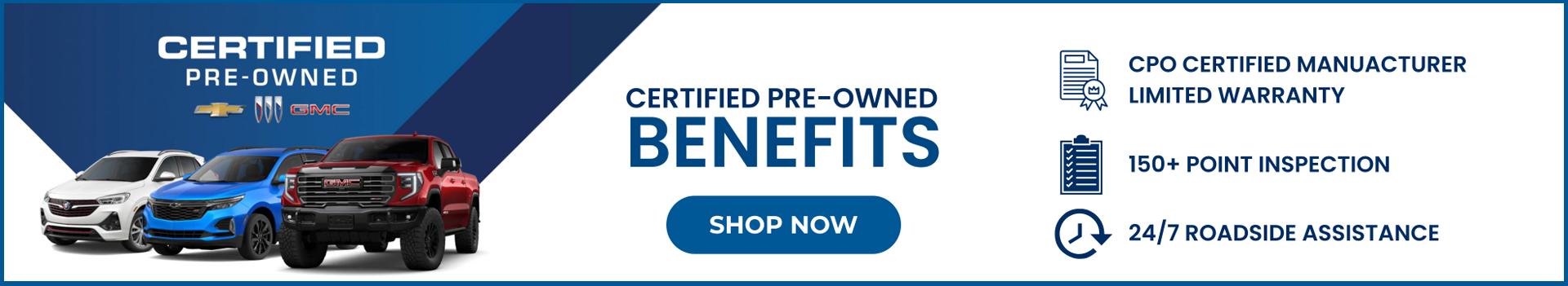 Your Certified Pre-Owned vehicle has less than 3 months or 5,000 km remaining on its original warranty — GM will extend Roadside Assistance for an additional 3 months or 5,000 km after it expires.